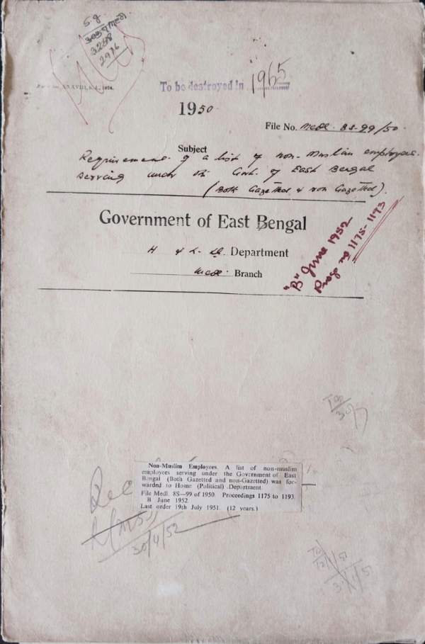 Requirement of a list of non-Muslim exposes serving under the govt. of East Pakistan.