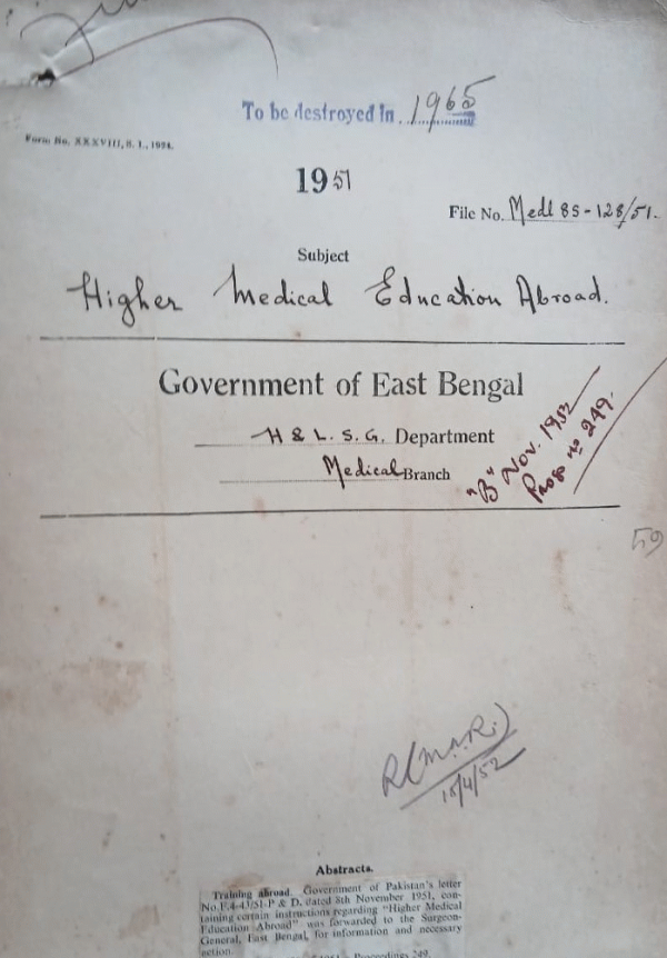 | Rack No. 10, Bundle No. 116 Sl No. 9556 Sanction of printing charges amounting to Rs. 2/2/8/- | Rack No. 10, Bundle No. 116 Sl No. 9557 Powers to the civil surgeons for writing off the value of stores up to the limit of Rs. 50/- | Rack No. 10, Bundle No. 116 Sl No. 9558 Revision of the pay scales of some Lab. Assistant, Packer, and Chemical examiner's of East Bengal. | Rack No. 10, Bundle No. 116 Sl No. 9559 Higher Medical Education Abroad. | Rack No. 10, Bundle No. 116 Sl No. 9560 Grant of Rs. 8500/- to Chandraghona Leper Colony, Chittagong Hill Tract for the year 1951-52. | Rack No. 10, Bundle No. 116 Sl No. 9561 Renewal of (Grant in aid) in kind at Medicines worth Rs-1000/- | Rack No. 10, Bundle No. 116 Sl No. 9562 Sanitary installation in the Sadar Prov. Hospital, Barisal. |