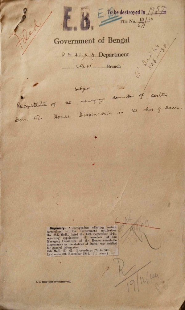 Reconstitution of the Managing committee of Certain District Bd. Homeo Dispensaries in the District of Dacca.