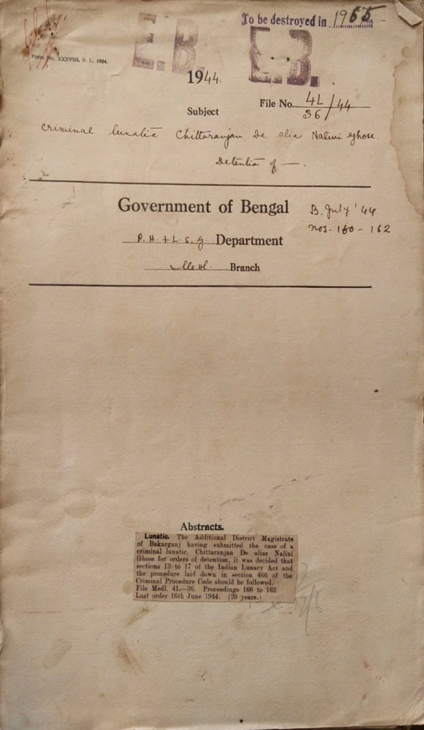 Criminal lunatic Chittaranjan De alias Nalini Ghose Detention of