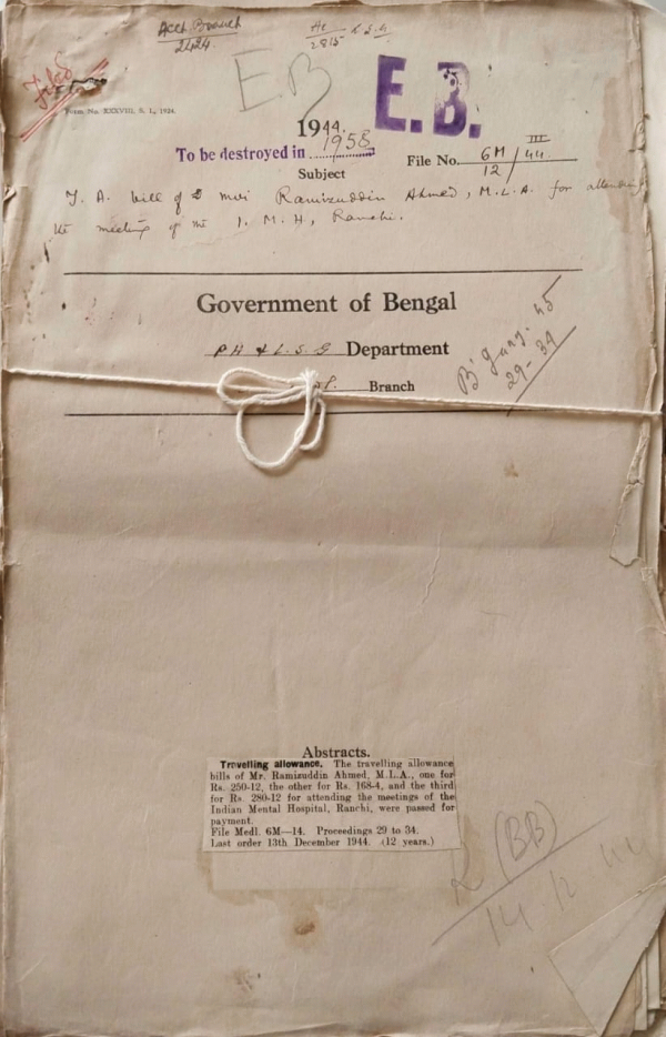 T.A. bills of Mr. Ramizuddin Ahmed M.L.A. for attending the meeting of the I.M.H. Ranchi.