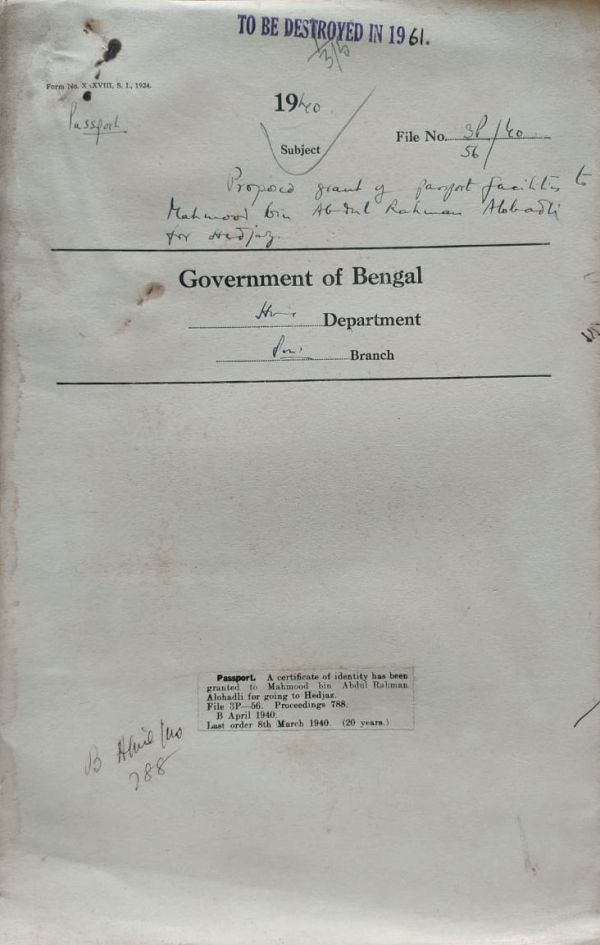 Grant of Passport to Mahmaod Bin Abdul Rahman Alohadli.