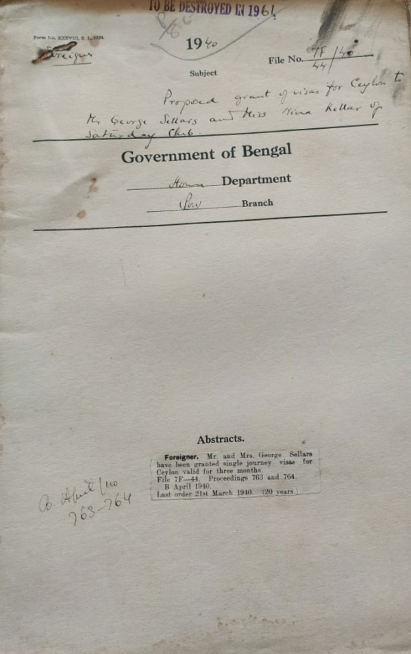 Grant of Visa for Ceylon to Mr. & Mrs. George Sellers.