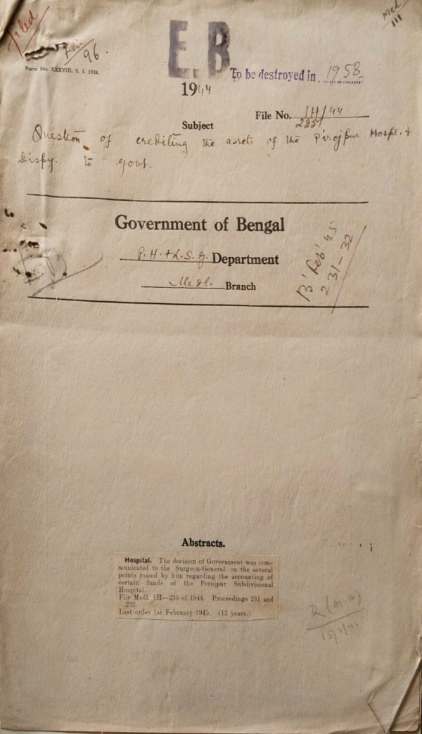 Question of crediting the assets of the Perojpur Hospital and Dispensary to government.