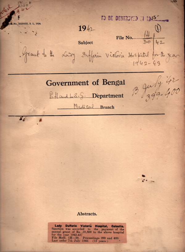 Grant to the Lady Duffer in Victoria Hospital for the year 1942-43.