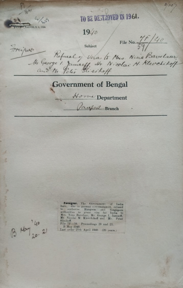 | Rack No. 42, Bundle No. 06, Sl No. 334 Statement regarding action taken by the Govt. on the resolution passed in Council. | Rack No. 42, Bundle No. 06, Sl No. 335 Calling for a report for the Editor "Matribhumi" in connection with an article entitled "Dr. Debesh Mukerjee". | Rack No. 42, Bundle No. 06, Sl No. 336 Question of good purchased for a Governor. | Rack No. 42, Bundle No. 06, Sl No. 337 Refused to authorize Rangoon & Singapore authorities to grant visa for India. | Rack No. 42, Bundle No. 06, Sl No. 338 Grant of Visa for India to two Chinese merchants Shing Nien & Jeng Chi Fues. | Rack No. 42, Bundle No. 06, Sl No. 339 Visa requirements of British Subjects travelling from India to U.K. by air mail. | Rack No. 42, Bundle No. 06, Sl No. 340 Refusal of passport to Mr. Rafey Ahmad. |