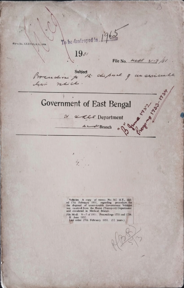 | Rack No. 9, Bundle No. 112, Sl No. 9270 Sanction of house rent to the Lady doctor, Sadar Hospital, Pabna. | Rack No. 9, Bundle No. 112, Sl No. 9271 Extension of Kitchen in nurses quarters certain addition and alteration in connection with an alteration in connection with separation of male and female wards + extension of bath etc. of the D.M.C. | Rack No. 9, Bundle No. 112, Sl No. 9272 Appointment of the Assistant Surgeon, Tangail Sub-Division as Medical Officer of the Kumidini College, Tangail. | Rack No. 9, Bundle No. 112, Sl No. 9273 Procedure for the disposal of unserviceable govt. vehicles. | Rack No. 9, Bundle No. 112, Sl No. 9274 Necessary Medical facilities to P & T staff. | Rack No. 9, Bundle No. 112, Sl No. 9275 Confirmation of Dr. Md. Mostafa as M. O., V. D. Clinic, Comilla. | Rack No. 9, Bundle No. 112, Sl No. 9276 Purchase of Mag Sulph. Without calling for quotations for the use of the Medical Patients. |