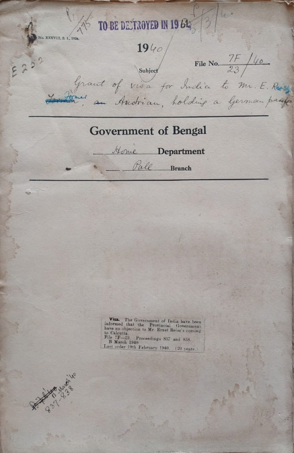 Grant of Visa for India to Mr. E. Reisz former Austrian.