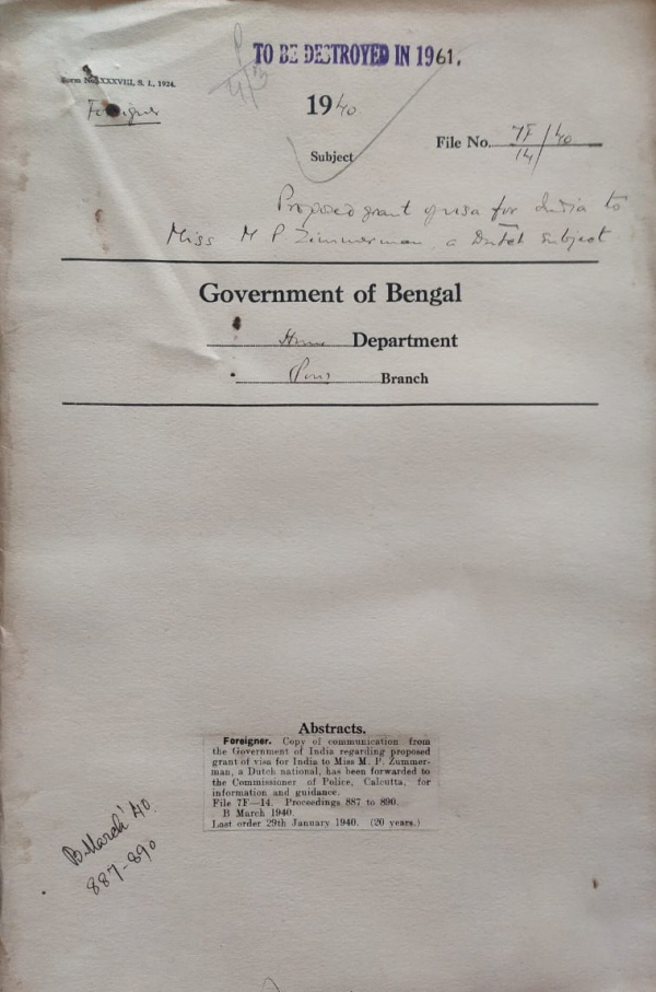 Proposed grant of Visa for India to Miss. M.P. Zummerman Dutch National.