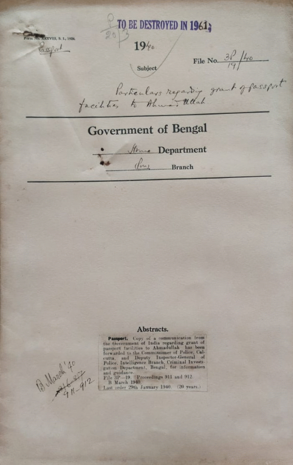 | Rack No. 42, Bundle No. 06, Sl No. 365 Proposed grant of Visa for India to Miss. M.P. Zummerman Dutch National. | Rack No. 42, Bundle No. 06, Sl No. 366 Visa requirement of British Subjects travelling from India to the U.K. | Rack No. 42, Bundle No. 06, Sl No. 367 Grant of a single journey emergency certificate to Mohammad Khan, Guard Hongkong Prison Department. | Rack No. 42, Bundle No. 06, Sl No. 368 Particulars regarding grant of Passport to facilities to Ahmudullah. | Rack No. 42, Bundle No. 06, Sl No. 369 Release of money deposited against the passport of Mr. Protap Chandra Mukerji. | Rack No. 42, Bundle No. 06, Sl No. 370 Visa fees for holders of Turkish Passport. | Rack No. 42, Bundle No. 06, Sl No. 371 Particulars regarding grant of passport facilities to Dwijendra Chandra Dutta & Abdul Rub Mollah. |