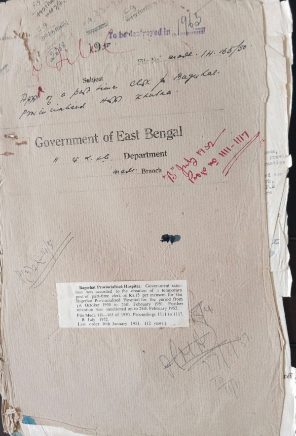 | Rack No. 10, Bundle No. 113, Sl No. 9308 Providing wall almirahs with sliding doors in the library of Dacca Medical College. | Rack No. 10, Bundle No. 113, Sl No. 9309 Sanction for purchasing furniture for the use in the different Department of Dacca Medical College amounting to Rs. 11000/- | Rack No. 10, Bundle No. 113, Sl No. 9310 Salaries of S.A.S. employed in the Thana Dispensaries | Rack No. 10, Bundle No. 113, Sl No. 9311 Appointment of a part-time Clerk Bagherhat Provincialized Hospital, Khulna | Rack No. 10, Bundle No. 113, Sl No. 9312 Recovery of the amount of Rs. 94/- from Dr. S.N. Sengupta Lali Hong, Pathologist sadar Hospital | Rack No. 10, Bundle No. 113, Sl No. 9313 Realization of subscriptions for the Thana Dispensaries | Rack No. 10, Bundle No. 113, Sl No. 9314 Appointment of seasonal vaccinators |