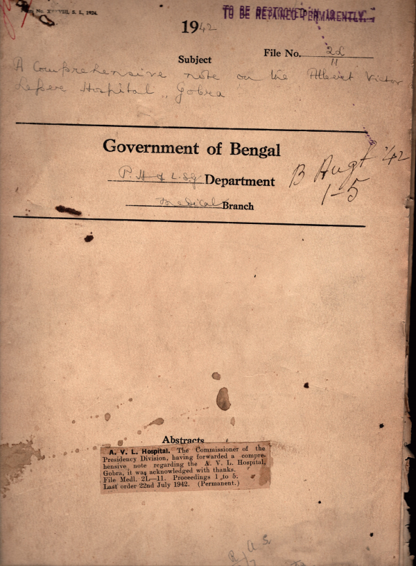 | Rack No. 09; Bundle No. 91 SL No. 7030 Leave of Lt-Col. P.F. Gow I.M.S. (Retd.) Honorary Medical Officer, P.G. Hospital Calcutta. | Rack No. 09; Bundle No. 91 SL No. 7031 Prevention of exploitation of troops. | Rack No. 09; Bundle No. 91 SL No. 7032 Selection of sides for buildings to be construct departmentally by the various departments of govt | Rack No. 09; Bundle No. 91 SL No. 7033 A comprehensive note regarding the Albert victor hospital Gobra. | Rack No. 09; Bundle No. 91 SL No. 7034 Entertainment of a temporary Sub-Assistants Surgeon in the vacancy caused by the deputation of foreign service of the school of Tropical medicine. | Rack No. 09; Bundle No. 91 SL No. 7035 Maintenance Charge for the telephone connection in his residence of the imperial Surgeon. | Rack No. 09; Bundle No. 91 SL No. 7036 Grant of Special pay of officers under the Control of the Secretary of state. |