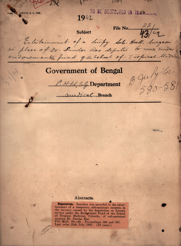 Entertainment of a temporary Sub-Assistants Surgeon in the vacancy caused by the deputation of foreign service of the school of Tropical medicine.