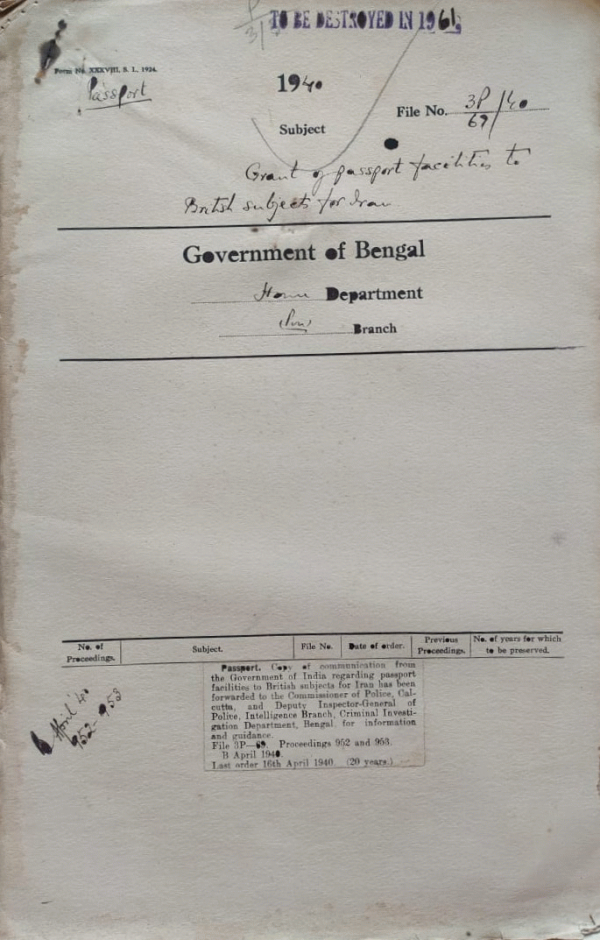 | Rack No. 42, Bundle No. 06, Sl No. 383 Refusal of passport to some persons by the govt. of Punjab. | Rack No. 42, Bundle No. 06, Sl No. 384 Refusal of Visa for Burma to Gul Mohammad Khan. | Rack No. 42, Bundle No. 06, Sl No. 385 Refusal of passport to Syed Mohd. Ali Nazi. | Rack No. 42, Bundle No. 06, Sl No. 386 Grant of passport facilities to British Subjects for Iran. | Rack No. 42, Bundle No. 06, Sl No. 387 Repatriation of Mr. Paul Lanel Santeur from Calcutta to Mauritius. | Rack No. 42, Bundle No. 06, Sl No. 388 Grant of Visa for Burma to some Afghan Nationals. | Rack No. 42, Bundle No. 06, Sl No. 389 Grant of Visa for India to Mr. R.W. Koiter, a Netherland Subject to enable him to join the electric lamp Manufacturers (India) Ltd. |