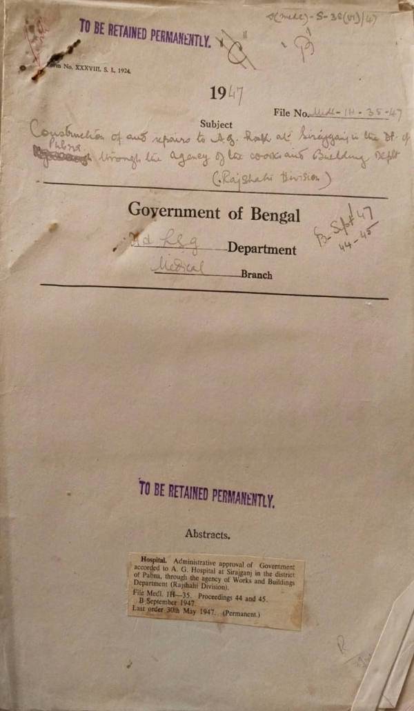 Construction of and repairs to A. G. Hostel at Sriajganj in the District of Pabna.