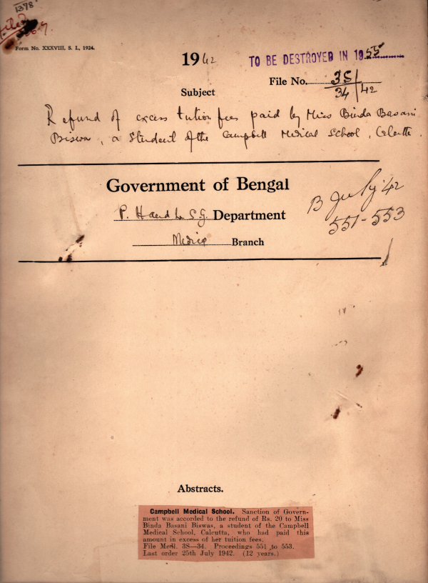 | Rack No. 09; Bundle No. 91 SL No. 7034 Entertainment of a temporary Sub-Assistants Surgeon in the vacancy caused by the deputation of foreign service of the school of Tropical medicine. | Rack No. 09; Bundle No. 91 SL No. 7035 Maintenance Charge for the telephone connection in his residence of the imperial Surgeon. | Rack No. 09; Bundle No. 91 SL No. 7036 Grant of Special pay of officers under the Control of the Secretary of state. | Rack No. 09; Bundle No. 91 SL No. 7037 Refund of excess Tuition fee paid by Bindo Busani Biswas A. Student of the Campbell medical school | Rack No. 09; Bundle No. 91 SL No. 7038 War injuries scheme Amendment. | Rack No. 09; Bundle No. 91 SL No. 7039 Grant to Vivekananda medical Ignition and hospital for women and Children. | Rack No. 09; Bundle No. 91 SL No. 7040 List of S.A.S. who has been dismissed for refusing to join military duty. |