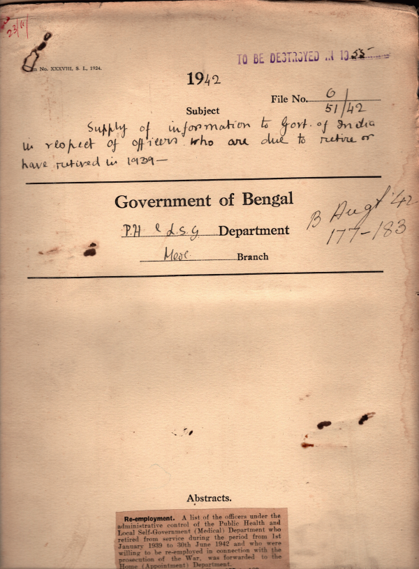 | Rack No. 09; Bundle No. 91 SL No. 7043 Recognition of the Mr. J.N. Bosle M.L.A. from the general council and state Faculty of Ayverdic medicine. | Rack No. 09; Bundle No. 91 SL No. 7044 T.A. Bill of Mr. Kshiti Mohan Sen of Samtiniketen for attending the conference regarding revision of the Constitution of the general council and state Faculty of Ayurvedic Medicine Bengal. | Rack No. 09; Bundle No. 91 SL No. 7045 Transfer of mental patient Kartic Majki From up to a mental hospital Bengal. | Rack No. 09; Bundle No. 91 SL No. 7046 Supply of importation to govt. of India in respect of officers who are due to retire in 1939. | Rack No. 09; Bundle No. 91 SL No. 7047 Scheme for the stamping and distribution of Identity dices. | Rack No. 09; Bundle No. 91 SL No. 7048 Extension of the temporary stuff entertain in connect connection with war is S.G's office. | Rack No. 09; Bundle No. 91 SL No. 7049 High Commissioner budget Receipts and disbursement for the month march 1942. |
