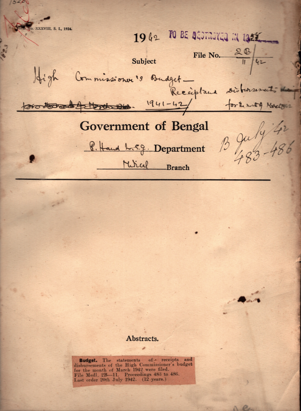 | Rack No. 09; Bundle No. 91 SL No. 7046 Supply of importation to govt. of India in respect of officers who are due to retire in 1939. | Rack No. 09; Bundle No. 91 SL No. 7047 Scheme for the stamping and distribution of Identity dices. | Rack No. 09; Bundle No. 91 SL No. 7048 Extension of the temporary stuff entertain in connect connection with war is S.G's office. | Rack No. 09; Bundle No. 91 SL No. 7049 High Commissioner budget Receipts and disbursement for the month march 1942. | Rack No. 09; Bundle No. 91 SL No. 7050 Appointment of Dr. Sachindra Nath Roy as Senior Demonstrator of Practical Pharmacy medical college hospital. | Rack No. 09; Bundle No. 91 SL No. 7051 Allowance to S.A.S. Mr. Jamian Rahman Medical Officers in charge of Police Hospital Rangpur doing the duties as the S.A.S. Rangpur Jail Hospital. | Rack No. 09; Bundle No. 91 SL No. 7052 A comprehensive rule of the S.K. hospital Mymensingh. |