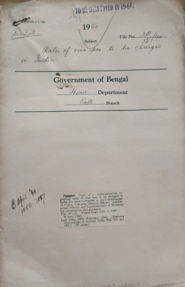 | Rack No. 42, Bundle No. 07, Sl No. 397 Disposal of the Property of the Deoli Detention Jail. | Rack No. 42, Bundle No. 07, Sl No. 398 Haj Pilgrims shipping arrangements Reports 1938-39. | Rack No. 42, Bundle No. 07, Sl No. 399 Printing from of "List of Pilgrims Proceeding to the Hedja to whom passes have been granted by Pilgrim Department, Calcutta. | Rack No. 42, Bundle No. 07, Sl No. 400 Rates of Visa fees to be charged in India. | Rack No. 42, Bundle No. 07, Sl No. 401 Refusal of Passport facilities to Mohammad Rafi for Japan. | Rack No. 42, Bundle No. 07, Sl No. 402 Refund of the Sum of 500/- to Hari Gopal Barat Deposited by him for his repatriation charges for Eden Burgh. | Rack No. 42, Bundle No. 07, Sl No. 403 Refusal of Passport facilities to drug traffickers by the govt. of Assam. |