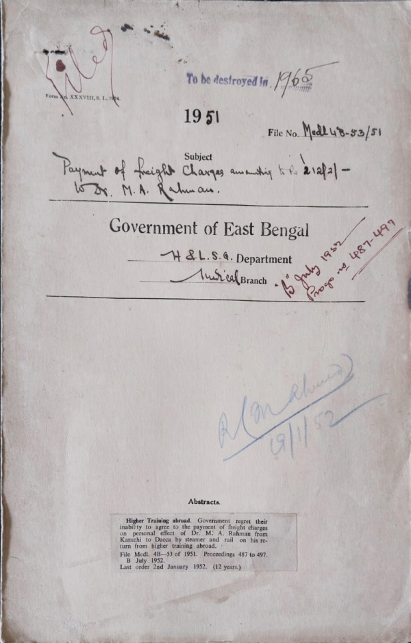 | Rack No. 10, Bundle No. 113, Sl No. 9328 Question of continence of Dr. S.K. Nizamul Islam, Medical Officer of the Barisal Thana Dispensary as District Board, Mymensingh | Rack No. 10, Bundle No. 113, Sl No. 9329 Motor car advance to Dr. K.S. Alam, M.B. F.R.C.S (E) Assistant Professor of surgery Medical College, Dacca | Rack No. 10, Bundle No. 113, Sl No. 9330 Payment of Union bases in respect of Thana Hospital-cum-Dispensary in the District of Bakerganj | Rack No. 10, Bundle No. 113, Sl No. 9331 Payment of freight charges on personal effect Rs. 212/2/2 to Dr. M.A. Rahman | Rack No. 10, Bundle No. 113, Sl No. 9332 Sanction for appointment of a gas maker for the Sylhet Medical School | Rack No. 10, Bundle No. 113, Sl No. 9333 Verification of service statement of Dr. Probodh Chandra Das | Rack No. 10, Bundle No. 113, Sl No. 9334 Provision of 4 emergency beds for the Chakhar Rural Dispensary in Bakerganj |