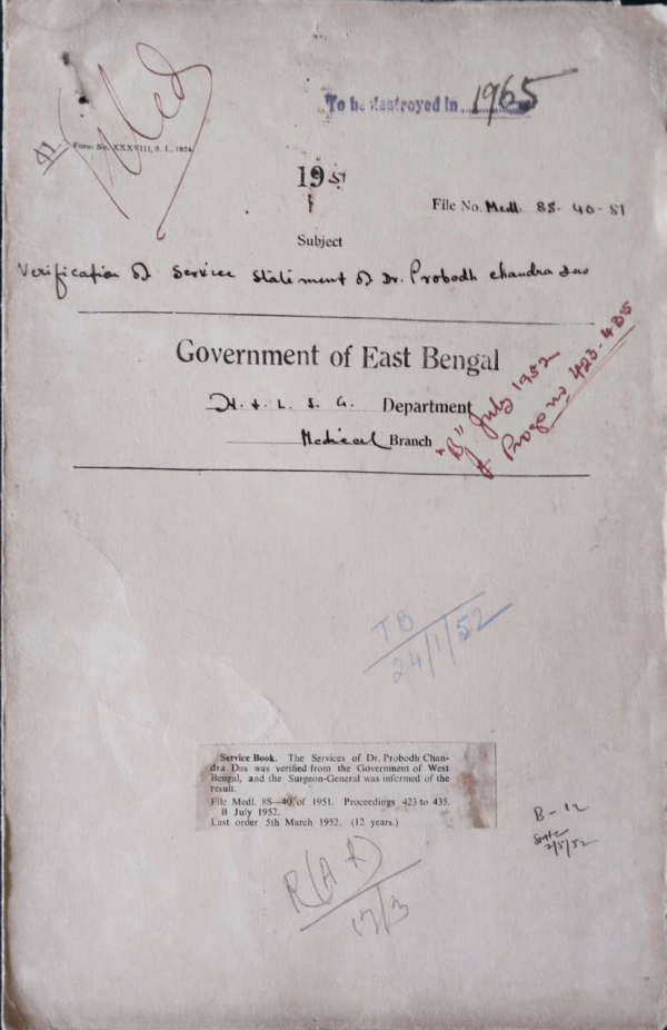 | Rack No. 10, Bundle No. 113, Sl No. 9330 Payment of Union bases in respect of Thana Hospital-cum-Dispensary in the District of Bakerganj | Rack No. 10, Bundle No. 113, Sl No. 9331 Payment of freight charges on personal effect Rs. 212/2/2 to Dr. M.A. Rahman | Rack No. 10, Bundle No. 113, Sl No. 9332 Sanction for appointment of a gas maker for the Sylhet Medical School | Rack No. 10, Bundle No. 113, Sl No. 9333 Verification of service statement of Dr. Probodh Chandra Das | Rack No. 10, Bundle No. 113, Sl No. 9334 Provision of 4 emergency beds for the Chakhar Rural Dispensary in Bakerganj | Rack No. 10, Bundle No. 113, Sl No. 9335 Repair of double twin X-ray units at Mitford hospital, Dacca | Rack No. 10, Bundle No. 113, Sl No. 9336 Allotment for 1949-50 |