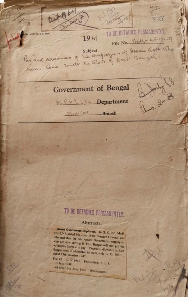 | Rack No. 09, Bundle No. 100, SI No. 7820 Conversion of a single compounder quarters in to family quarters attached to the F.R.E. hostel at Sripur. | Rack No. 09, Bundle No. 100, SI No. 7821 Petition for extension tuition for payment of fees in the Dacca Medical School. | Rack No. 09, Bundle No. 100, SI No. 7822 Grants to thana and village Dispensaries Dacca. | Rack No. 09, Bundle No. 100, SI No. 7823 Pay and allowances of the employee of Assam Govt. | Rack No. 09, Bundle No. 100, SI No. 7824 Storm damage repairs to 20 bedded A.G. Hospital at Chittagong. | Rack No. 09, Bundle No. 100, SI No. 7825 Permission to unregistered medical practitioners to act as M/O of the U. Bd. dispensaries. | Rack No. 09, Bundle No. 100, SI No. 7826 Repainting the existing electric lights and Fans in the operation theater of the Sadar Provincial Hospital, Khulna. |