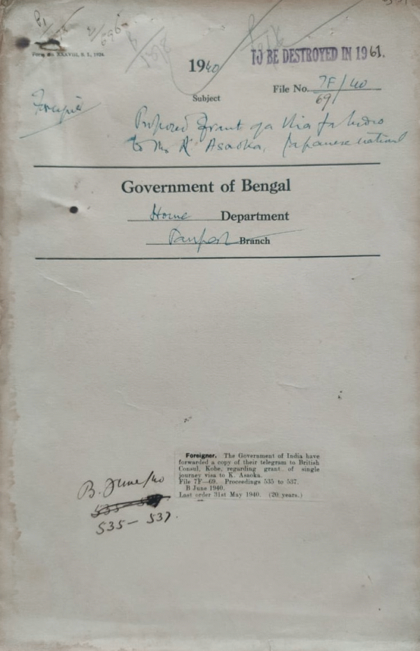 | Rack No. 42, Bundle No. 07, Sl No. 412 Refusal of Passport facilities to Some Persons by the Resident for Rajputana. | Rack No. 42, Bundle No. 07, Sl No. 413 Proposed repatriation for England to India of Miss. P.N. Foster. | Rack No. 42, Bundle No. 07, Sl No. 414 Grant of Visa for India to Mvi. R. Imoto and Miss. S. Hashimoto Japanese Nationals. | Rack No. 42, Bundle No. 07, Sl No. 415 Proposed grant of a visa for India to K. Asaoka, Japanese National. | Rack No. 42, Bundle No. 07, Sl No. 416 Proposed grant of a visa for India to Professor Alexander Kalituisky an Ex-Russian now residing in France. | Rack No. 42, Bundle No. 07, Sl No. 417 Proposed grant of Passport facilities to Mr. Ezra Shalome Daniel Ezckiel. | Rack No. 42, Bundle No. 07, Sl No. 418 Proposed grant of a visa for India to Mrs. Liang Sooi Yin, a Chinese National. |