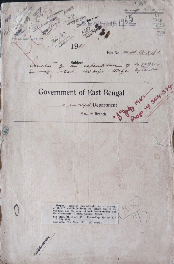 | Rack No. 10, Bundle No. 113, Sl No. 9333 Verification of service statement of Dr. Probodh Chandra Das | Rack No. 10, Bundle No. 113, Sl No. 9334 Provision of 4 emergency beds for the Chakhar Rural Dispensary in Bakerganj | Rack No. 10, Bundle No. 113, Sl No. 9335 Repair of double twin X-ray units at Mitford hospital, Dacca | Rack No. 10, Bundle No. 113, Sl No. 9336 Allotment for 1949-50 | Rack No. 10, Bundle No. 113, Sl No. 9337 Declaration of the menials of the V.D. Clinics attached to the sadar Hospital at Comilla and Chittagong as temporary Establishment menials | Rack No. 10, Bundle No. 113, Sl No. 9338 Proposal for appointment of an additional Clerk in the General Hospital, Chittagong | Rack No. 10, Bundle No. 113, Sl No. 9339 Service records relating to Dr. S.A. Laskar |