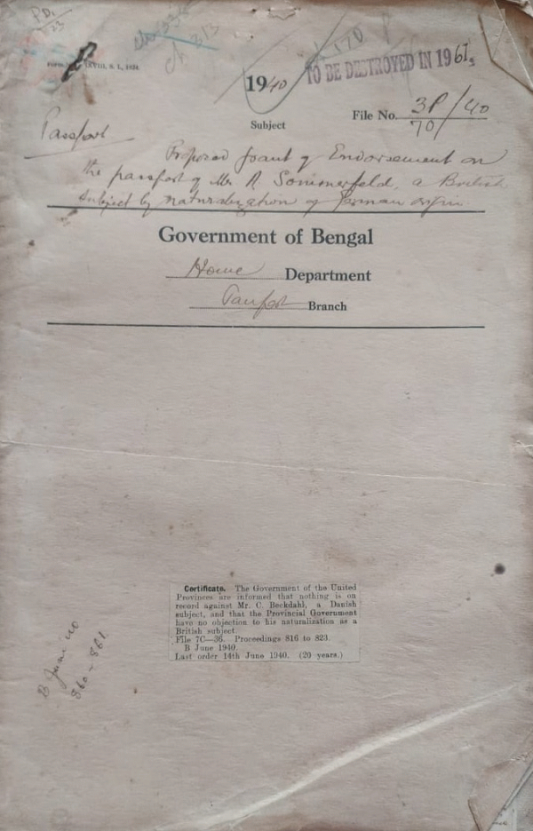 | Rack No. 42, Bundle No. 07, Sl No. 434 Grant of a Certificate & Identity to Rev. Joshh Kraman a Yugoshlovak National. | Rack No. 42, Bundle No. 07, Sl No. 435 Revised rates of pay and allowances for officers on the personal staff of Government. | Rack No. 42, Bundle No. 07, Sl No. 436 Pay Civil leave pension and increments of civil pay of reservists of the Royal Indian Fleet Reserve when called up for periodical training. | Rack No. 42, Bundle No. 07, Sl No. 437 Proposed grant of Endorsement on the passport of Mr. C. Beckdahal, a Danish National. | Rack No. 42, Bundle No. 07, Sl No. 438 Refusal of Passport facilities to Mr. Obeidullah Sindhi by the govt. of Sindh. | Rack No. 42, Bundle No. 07, Sl No. 439 Grant and renewal of German passports. | Rack No. 42, Bundle No. 07, Sl No. 440 Refusal of Passport facilities to Raghubir Saran by Chief Commissioner, Delhi. |