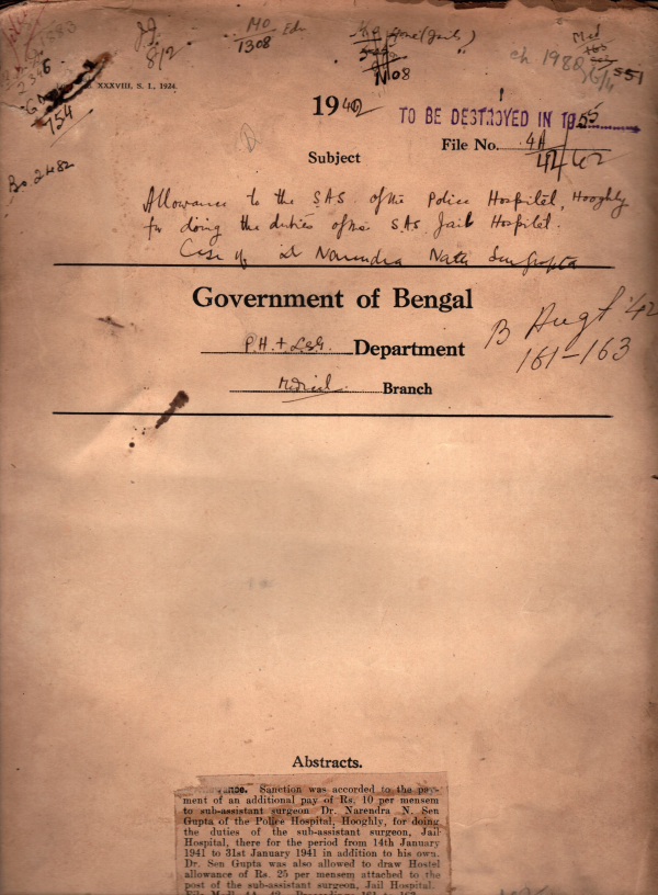 Allowance to the S.A.S. of the Police Hospital Hooghly for doing of the S.A.S. gail Hopites case of Dr. Narendra Nath Sengupta