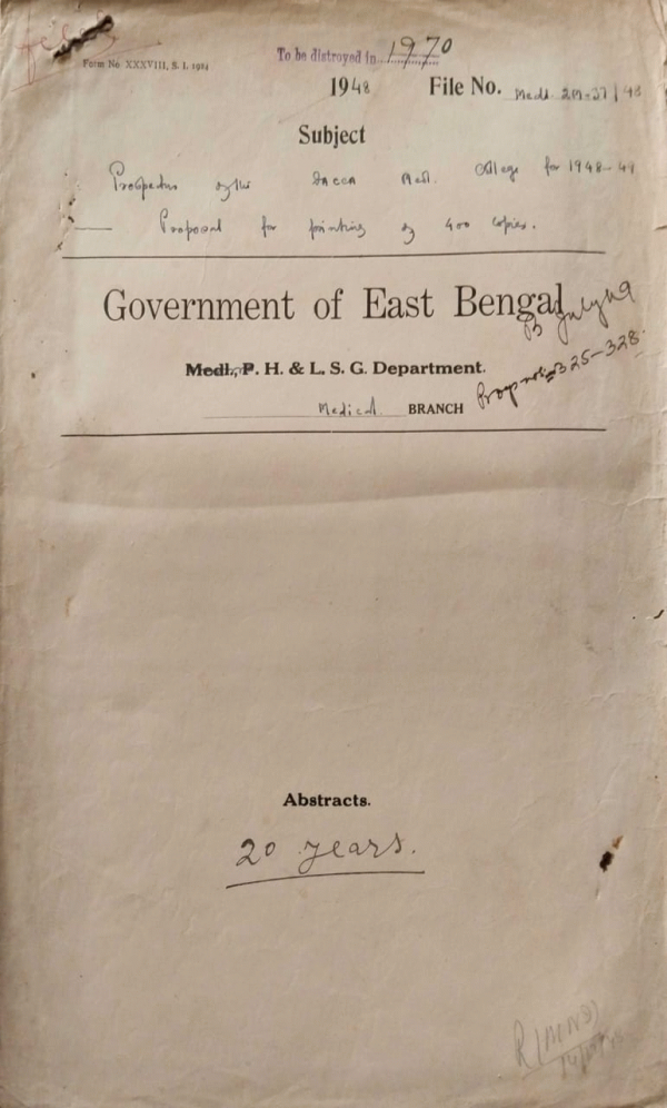 Prospectus of the Dacca Medical College for 1948-49 Proposals for printing of 400 copies.