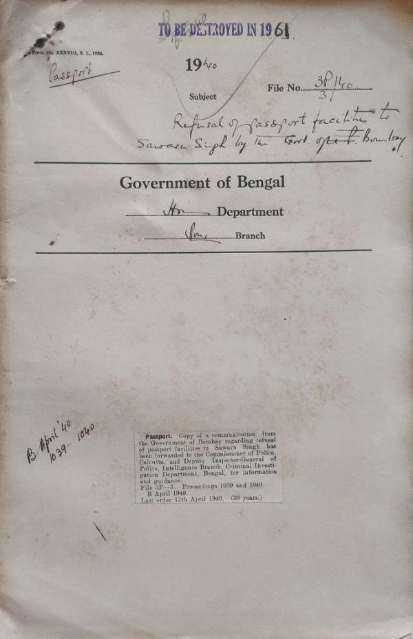 Refusal of Passport facilities to Sawaru Singh by the govt. of Bombay.