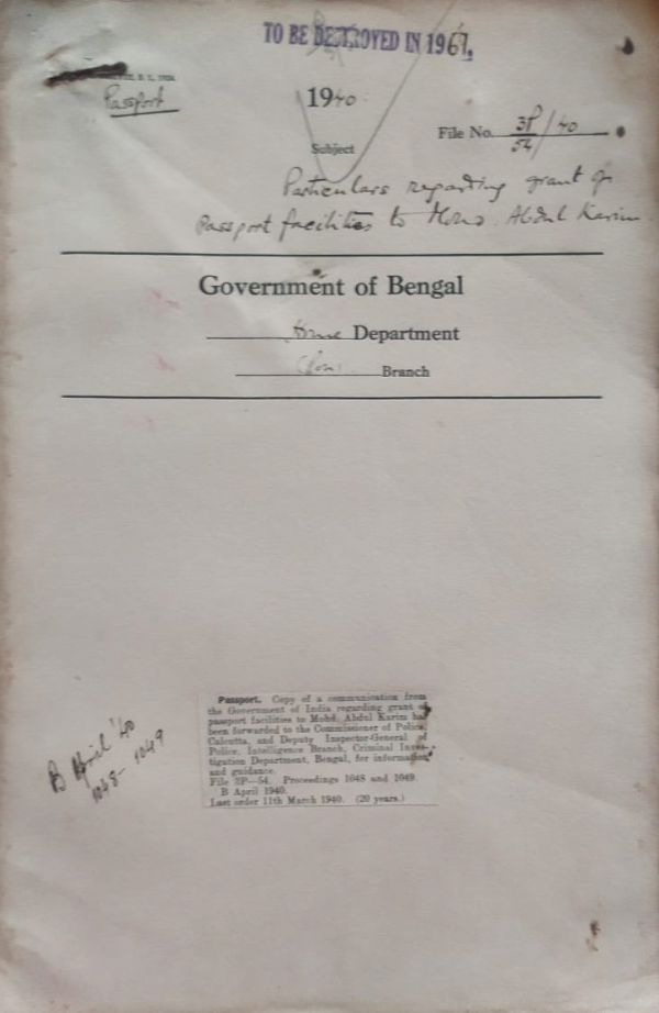 Particulars regarding grant of passport facilities to Mohd. Abdul Karim.