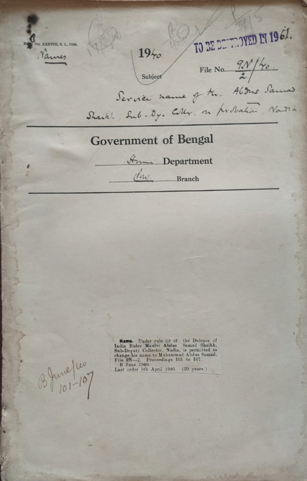 | Rack No. 42, Bundle No. 07, Sl No. 452 Exchange of official Publications between the govt. of the Punjab and Bengal on a reciprocal basis. | Rack No. 42, Bundle No. 07, Sl No. 453 Indian pilgrim ship Rules Draft amendments special food in case illness Rules 1933. | Rack No. 42, Bundle No. 07, Sl No. 454 Adoption of the memorandum from in ordinary correspondence. | Rack No. 42, Bundle No. 07, Sl No. 455 Service name of Mr. Abdus Samad Shaikh Sub Dy. Collector on Probation, Nadia. | Rack No. 42, Bundle No. 07, Sl No. 456 Special War Instruction regarding the grant of visas for British Colonies. | Rack No. 42, Bundle No. 07, Sl No. 457 Rationing of Steel Supplies from the U.K. | Rack No. 42, Bundle No. 07, Sl No. 458 Passport facilities to Mrs. Rosamunda and a child for India to Join her husband. |