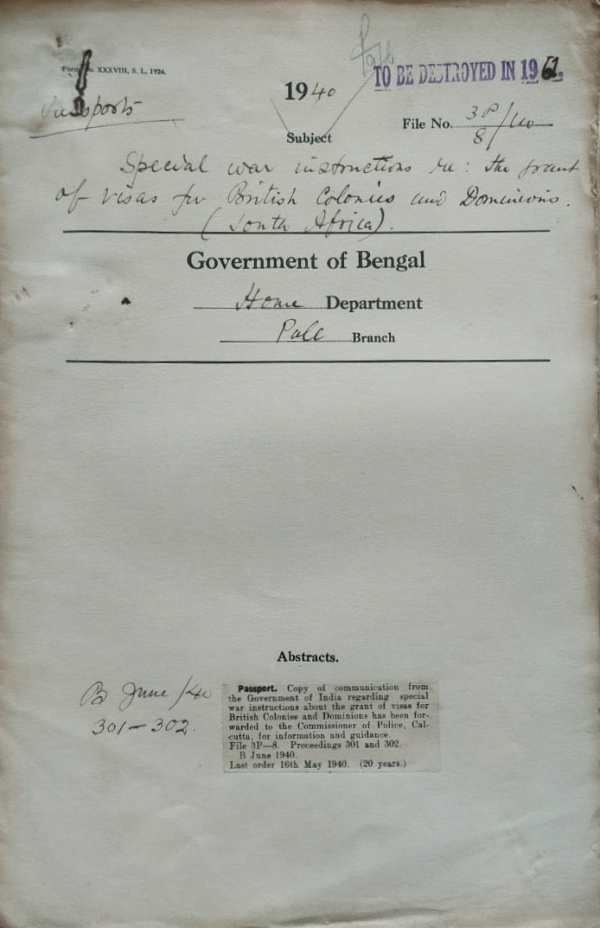 | Rack No. 42, Bundle No. 07, Sl No. 453 Indian pilgrim ship Rules Draft amendments special food in case illness Rules 1933. | Rack No. 42, Bundle No. 07, Sl No. 454 Adoption of the memorandum from in ordinary correspondence. | Rack No. 42, Bundle No. 07, Sl No. 455 Service name of Mr. Abdus Samad Shaikh Sub Dy. Collector on Probation, Nadia. | Rack No. 42, Bundle No. 07, Sl No. 456 Special War Instruction regarding the grant of visas for British Colonies. | Rack No. 42, Bundle No. 07, Sl No. 457 Rationing of Steel Supplies from the U.K. | Rack No. 42, Bundle No. 07, Sl No. 458 Passport facilities to Mrs. Rosamunda and a child for India to Join her husband. | Rack No. 42, Bundle No. 07, Sl No. 459 Refusal of Passport facilities by the govt. of Bombay. |