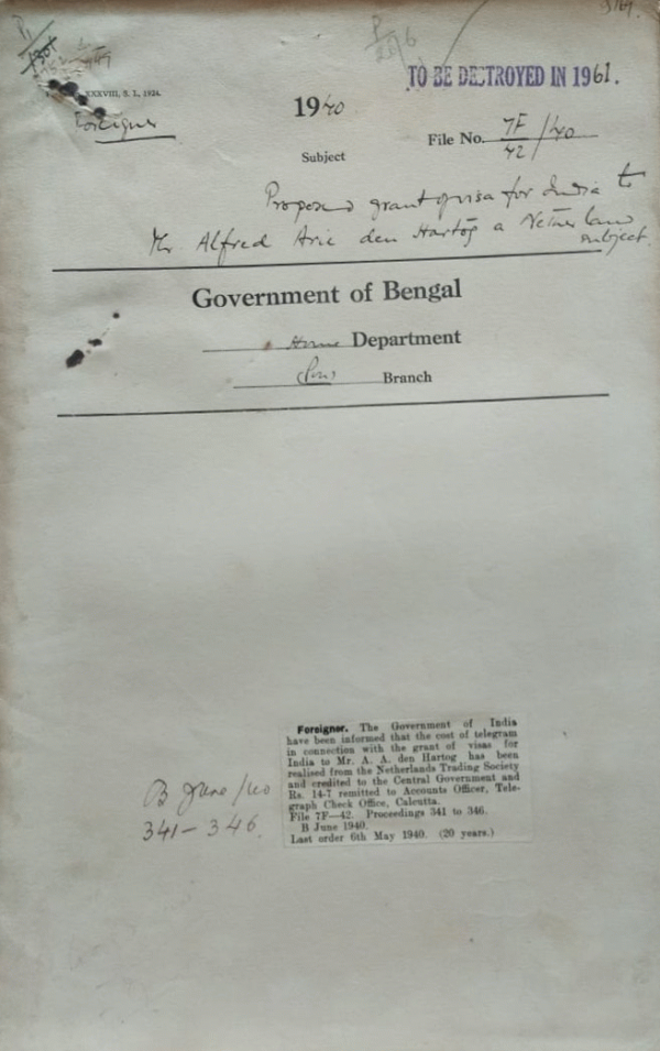 Proposed grant of visa for India to Mr. A.A. Den Hartog a Netherland National.