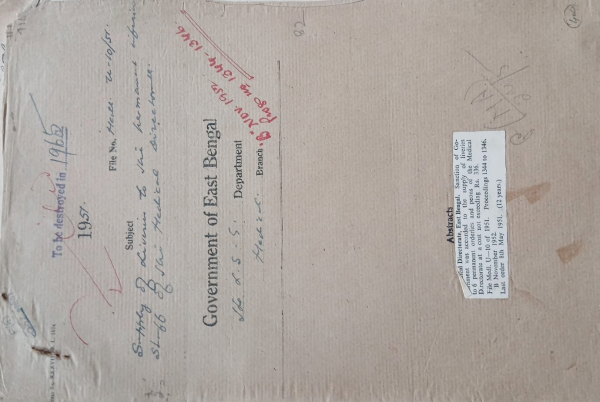| Rack No. 10, Bundle No. 117 Sl No. 9679 Arrear house rent of the Chandpur Additional D.R.S. | Rack No. 10, Bundle No. 117 Sl No. 9680 Grant of an advance Rs. from the Col. found to Mr. K.F. Rahman P.A. | Rack No. 10, Bundle No. 117 Sl No. 9681 Appointment of contractors for supply of articles of different groups to the Mitford Hospital, Dacca. | Rack No. 10, Bundle No. 117 Sl No. 9682 Sanction to the expenditure for making liveries. | Rack No. 10, Bundle No. 117 Sl No. 9683 T.A. Bill of Mr. Muzammal Hossain M.L.A. from Kulna to Dacca. | Rack No. 10, Bundle No. 117 Sl No. 9684 Government sanction for repair of the Jeep attached to this Directorate. | Rack No. 10, Bundle No. 117 Sl No. 9685 Accommodation of cats in the Chemical Examiners laboratory at Dacca Medical College. |