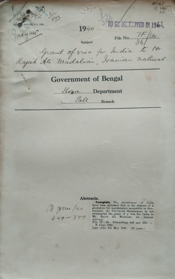 | Rack No. 42, Bundle No. 07, Sl No. 464 Grant of visa for India Mr. Zdeneko Burda a Czechoslovakian National. | Rack No. 42, Bundle No. 07, Sl No. 465 Proposed grant of visa for India to Mr. A.A. Den Hartog a Netherland National. | Rack No. 42, Bundle No. 07, Sl No. 466 Proposed grant of visa for India to M.K. Ueki and G. Sera Japanese National. | Rack No. 42, Bundle No. 07, Sl No. 467 Grant of visa for India to MR. Rajab Ali Madalian, Iranian National. | Rack No. 42, Bundle No. 07, Sl No. 468 Deportation of Kharak Bahadur from Bangkok. | Rack No. 42, Bundle No. 07, Sl No. 469 Decision regarding appointment to posts reserved for a certain community when a suitable candidate is not available. | Rack No. 42, Bundle No. 07, Sl No. 470 Whereabouts of eleven golden statues of kings of Burma. |