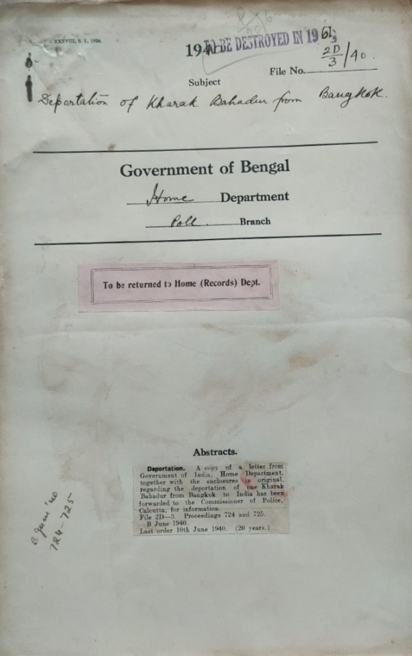 | Rack No. 42, Bundle No. 07, Sl No. 465 Proposed grant of visa for India to Mr. A.A. Den Hartog a Netherland National. | Rack No. 42, Bundle No. 07, Sl No. 466 Proposed grant of visa for India to M.K. Ueki and G. Sera Japanese National. | Rack No. 42, Bundle No. 07, Sl No. 467 Grant of visa for India to MR. Rajab Ali Madalian, Iranian National. | Rack No. 42, Bundle No. 07, Sl No. 468 Deportation of Kharak Bahadur from Bangkok. | Rack No. 42, Bundle No. 07, Sl No. 469 Decision regarding appointment to posts reserved for a certain community when a suitable candidate is not available. | Rack No. 42, Bundle No. 07, Sl No. 470 Whereabouts of eleven golden statues of kings of Burma. | Rack No. 42, Bundle No. 07, Sl No. 471 Naturalization of Mr. C. Beckdal a Danish National under B. N and S.A. Act, 1914. |