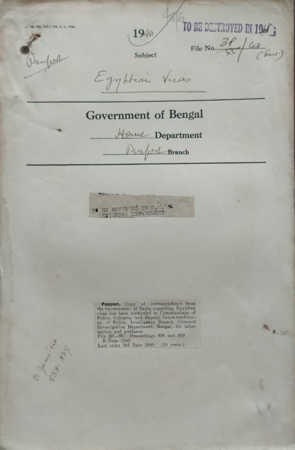 Egyptian Visas has been forwarded to commissioner of police. calcutta and Deputy Inspector-General of police, Intelligence Branch, Criminal Investigation Department Bengal.