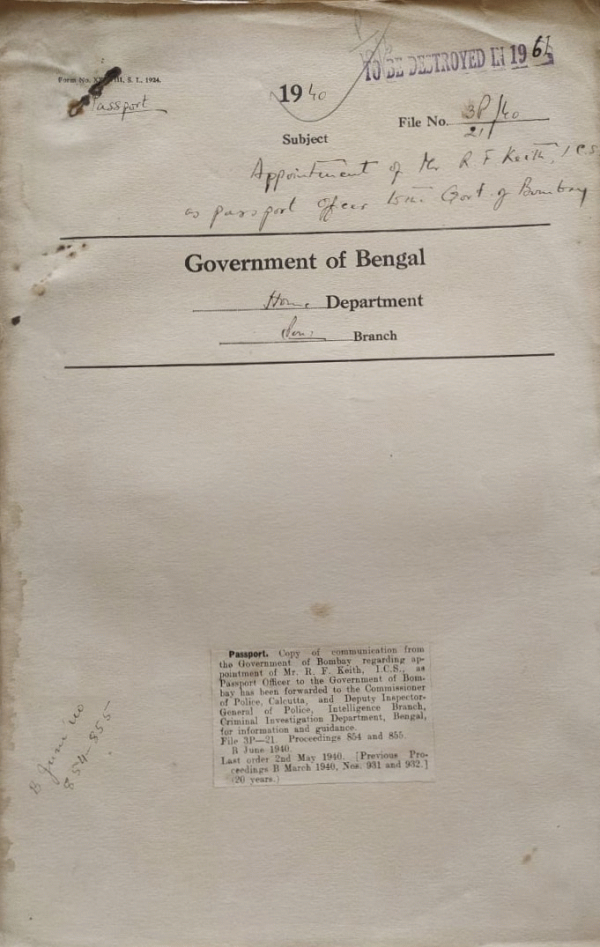 Appointment of Mr. R.F. Keith, I.C.S. as Passport officer to the govt. of Bombay.