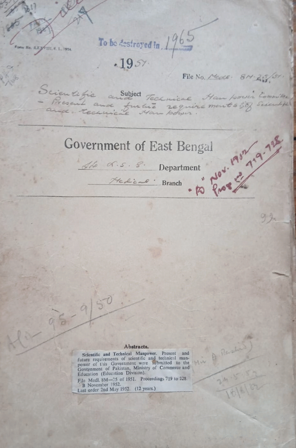 | Rack No. 10, Bundle No. 117 Sl No. 9696 Fixation of pay of Dr. Abdus Samad Chowdhury. | Rack No. 10, Bundle No. 117 Sl No. 9697 Common wealth programme of Technical Assistance. | Rack No. 10, Bundle No. 117 Sl No. 9698 Gazetted status of the posts of pilots of the government Flight Medical facilities to the Pilots. | Rack No. 10, Bundle No. 117 Sl No. 9699 Scientific and Technical Manpower Committee present and future requirements of scientific and technical manpower. | Rack No. 10, Bundle No. 117 Sl No. 9700 V.R. of Dr. Syed Anwar Ali. | Rack No. 10, Bundle No. 117 Sl No. 9701 Temporary Arrangement inplace of Dr. Akhtaruddin Ahmed S. Sylhet Since Retired. | Rack No. 10, Bundle No. 117 Sl No. 9702 Supply of liveries to the Firemen C.M.S. at Tejgaon. |