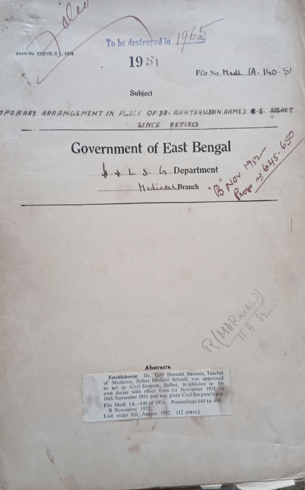 Temporary Arrangement inplace of Dr. Akhtaruddin Ahmed S. Sylhet Since Retired.