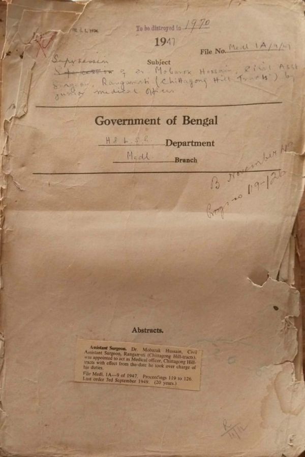 Supersession of Dr. Moharak Hossain, Civil Assistant Surgeon, Rangamati (Chittagong Hill Tracts) by Junior Medical Officers.