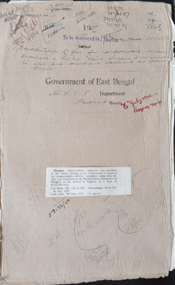 Construction of matters for compounder, midwife, sweepers septic tanks, latrine and incinerator in the sub-divisional Hospital at Brahmanbaria (Tippera)