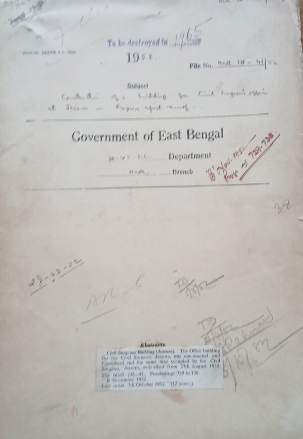 Construction of buildings for office of the Civil Surgeon at Jessore.
