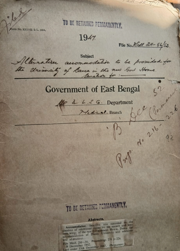 Alterations accommodations the provided for the university of Dacca in the new govt. house section for.