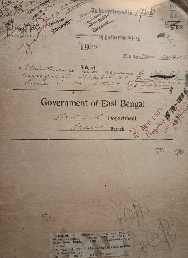 Maintenance and repairing to the T.B. Segregation Lt. of Feni and Brahmarbaria District of Tipperah.