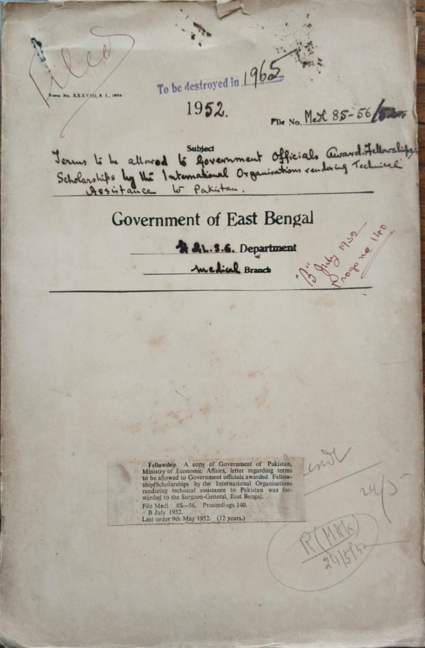 | Rack No. 10, Bundle No. 113, Sl No. 9389 Retention of the post of resident surgeon and anesthetists, Mitford Hospital, Dacca | Rack No. 10, Bundle No. 113, Sl No. 9390 Demurrage charges | Rack No. 10, Bundle No. 113, Sl No. 9391 Scheme of anti-tuberculosis prepared by Dr. Mohammad Ibrahim an East Bengal Scholar in the United Kingdom | Rack No. 10, Bundle No. 113, Sl No. 9392 Terms to be allowed to government officials awarded fellowship/ scholarship by the International organizations rendering technical assistance to Pakistan | Rack No. 10, Bundle No. 113, Sl No. 9393 Retention of 3 posts of E.M. office attached of the general Hospital, Chittagong | Rack No. 10, Bundle No. 113, Sl No. 9394 Instruction for the submission receipt and transmission of petitions to the Governor General | Rack No. 10, Bundle No. 113, Sl No. 9395 Purchase of course and reference Books for 1951-52 |