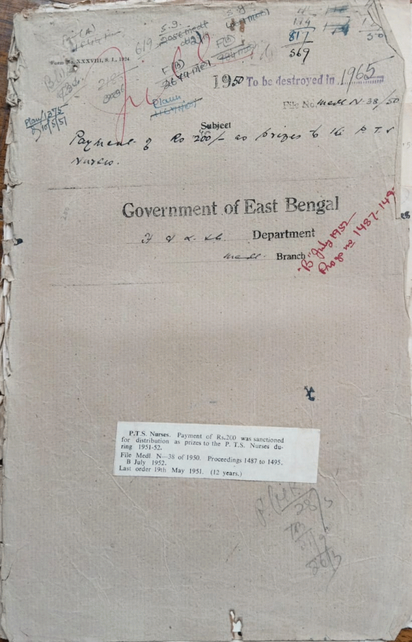 | Rack No. 10, Bundle No. 114, Sl No. 9404 Possession of the buildings by acquisition for use as outdoor Department of the Sylhet Hospital. | Rack No. 10, Bundle No. 114, Sl No. 9405 Permission to Dr. Z.A. Chowdhury teacher of Jurisprudence, Sylhet. | Rack No. 10, Bundle No. 114, Sl No. 9406 Grant of special pay to Mvi. T. Hossain P.A. to S.I.E.B. for doing double duties. | Rack No. 10, Bundle No. 114, Sl No. 9407 Payment of Rs. 200/- as Priges to the P.T.S. Nurses. | Rack No. 10, Bundle No. 114, Sl No. 9408 Payment of house rent for the Jaintapur thana Dispensary Sylhet. | Rack No. 10, Bundle No. 114, Sl No. 9409 Payment of the bill to the contractor for constructing a garage at Dalghat in the District of Chittagong. | Rack No. 10, Bundle No. 114, Sl No. 9410 Sanction for removal of Stores from the abolished A.G. Hospital in the District of Khulna. |
